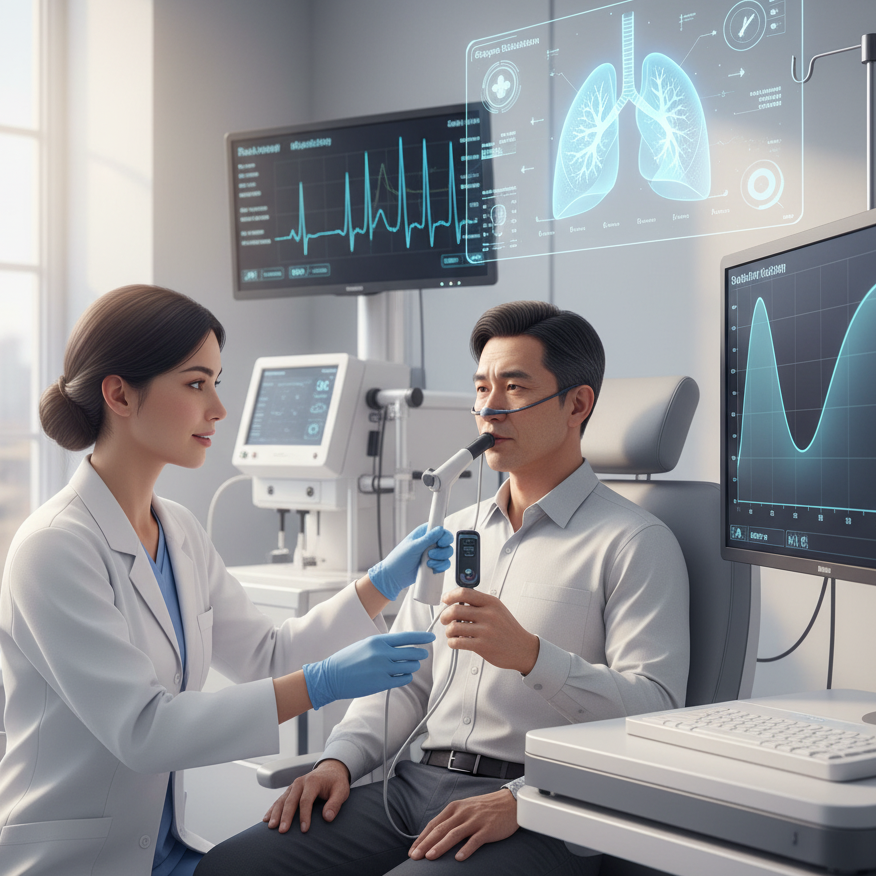 Spirometry: Measures air volume and speed of exhalation, fundamental for diagnosing asthma and COPD (airflow obstructions).